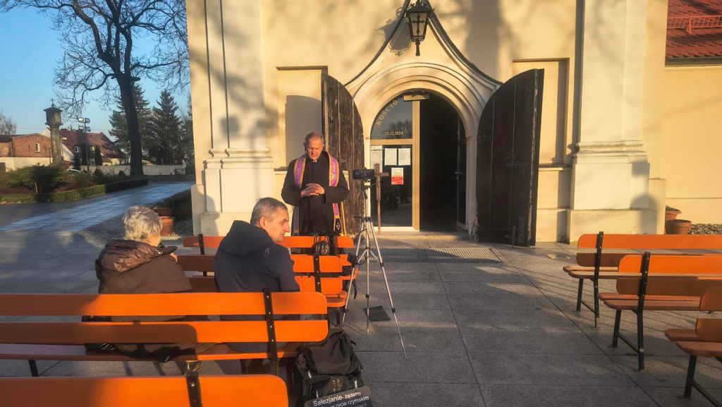 Modlitwa, sprzed drzwi salezjańskiego kościoła oraz pierwsza część Różańca – do odsłuchania tutaj.