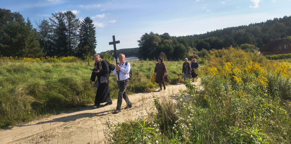 Po wyruszeniu w drogę i odśpiewaniu pieśni, Kapłan wraz z sześciorgiem wiernych modlili się Godzinkami ku czci NMP, a następnie została odmówiona pierwsza część Różańca– do odsłuchania tutaj
