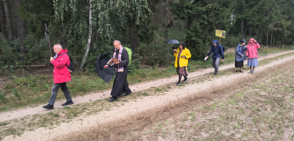Ok. godz. 9:00 przed kościołem Matki Bożej Różańcowej na Dajtkach Ksiądz Woźnicki rozpoczął pielgrzymkę modlitwą i do obecnych skierował słowo– do odsłuchania tutaj (na początku transmisji)
